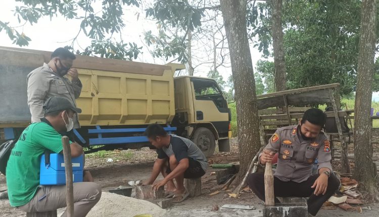 Ajak Warga Vaksin, Kapolsek Airgegas Bantu Bikin Batako