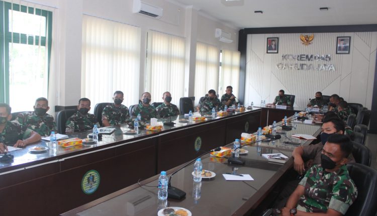 Rapat dihadiri oleh Kasrem 045/Gaya dan para Kasi Kasrem serta diikuti para komandan Kodim , Dan/Ka Satbalak secara virtual di jajaran satuan wilayah masing-masing