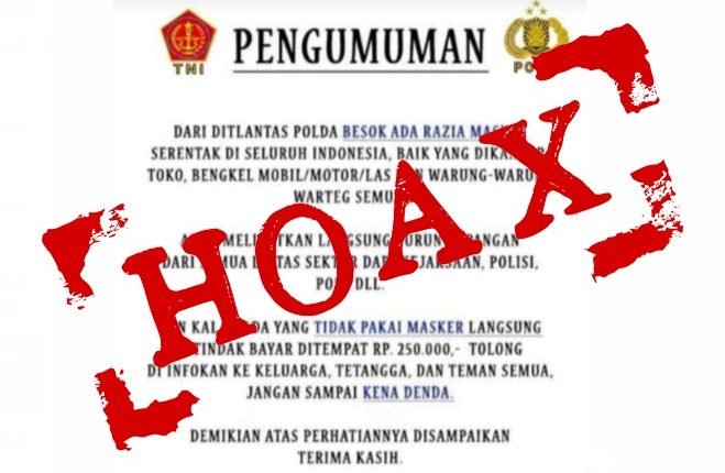 “Hoax, informasi tersebut jelas-jelas tidak benar. Informasi seperti ini sudah berulang kali menyebar.”tegas Kombes Pol Maladi.
