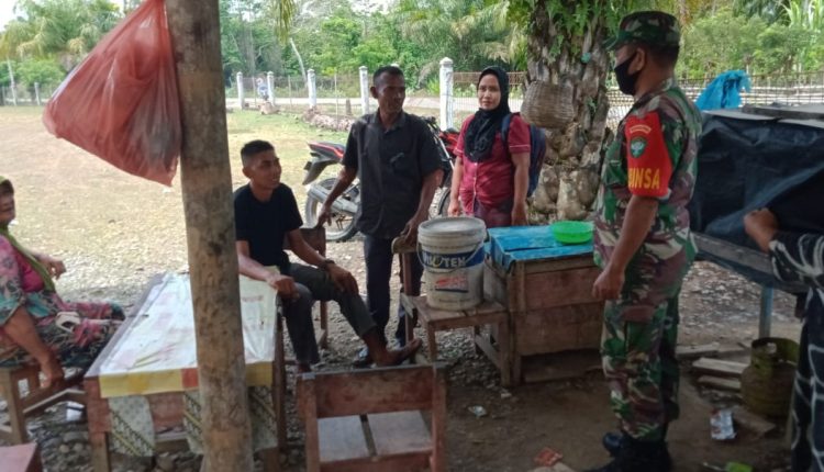 “Demi mencegah dan memutus mata rantai penyebaran Covid-19 di wilayah, kami rutin menghimbau warga agar selalu mematuhi protokol kesehatan 5M, diantaranya menggunakan masker, mencuci tangan dengan sabun, menjaga jarak, menghindari kerumunan dan mengurangi mobilitas masyarakat, tidak keluar rumah jika tidak ada sesuatu hal yang sangat penting” Ungkap Sertu Ongku Saleh.