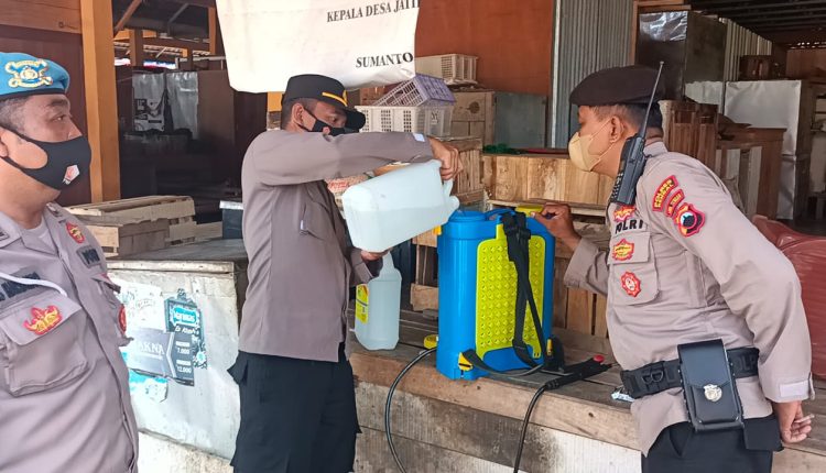 Wujudkan Pasar Sehat, Kapolsek Pegandon Dampingi Penyemprotan Disinfektan di Pasar Magangan