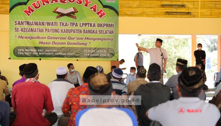 Gubernur Erzaldi lebih dulu melihat sebanyak 277 anak TKA/TPA se-Kecamatan Payung melangsungkan munaqosyah. Diharapkan melalui kegiatan tersebut dapat mewujudkan generasi qurani menyongsong masa depan gemilang.