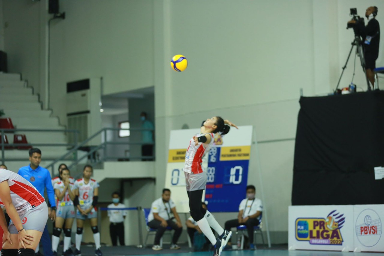 TerabasNews, Bogor, 21 Februari 2022 – Perjuangan para Srikandi muda Jakarta Elektrik PLN (JEP) untuk membuka pintu ke babak Final Four PLN Mobile Proliga 2022 terbentur permainan pemuncak klasemen Jakarta Pertamina Fastron (JPF). Meskipun memberikan perlawanan sengit sepanjang pertandingan, penampilan impresif JEP masih belum berhasil mematahkan rentetan kemenangan JPF dengan skor 1-3.