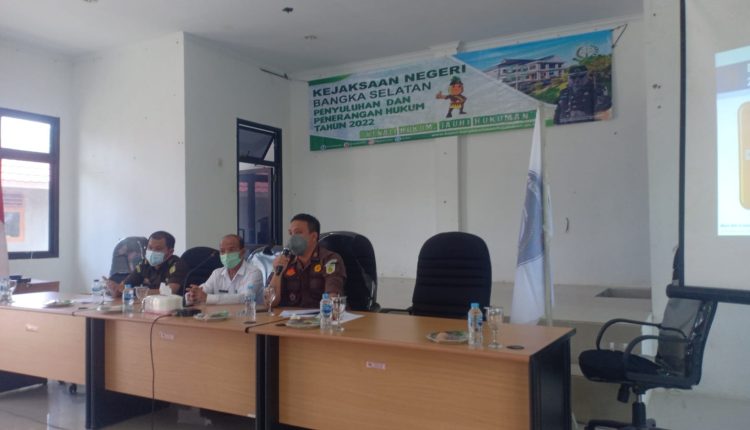 TerabasNews, Bangka Selatan – Kejaksaan Negeri (Kejari) Bangka Selatan menggelar penyuluhan dan penerangan hukum kepada Kepala Desa (Kades) se-Kecamatan Airgegas Kabupaten Bangka Selatan, Rabu (23/2/2022).