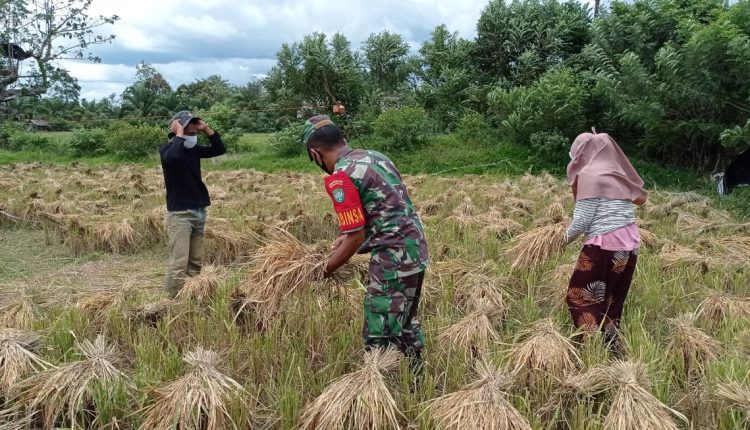 Babisan Koramil 11/Woyla Timur Bantu Petani Panen Padi Di Masa Pandemi