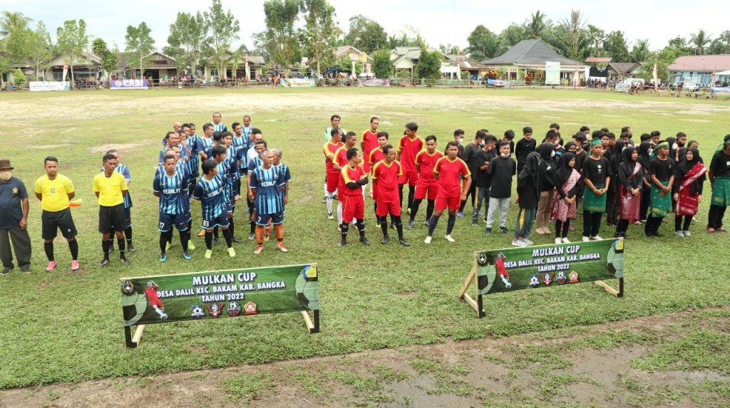 TerabasNews, BAKAM – Meningkatkan gairah dan memasyarakatkan olahraga di kalangan masyarakat, Bupati Bangka, Mulkan SH,MH membuka secara resmi turnament Sepak bola “Mulkan Cup” tahun 2022 di lapangan sepak bola Desa Dalil, Kecamatan Bakam, Kabupaten Bangka, Kamis (10/03).