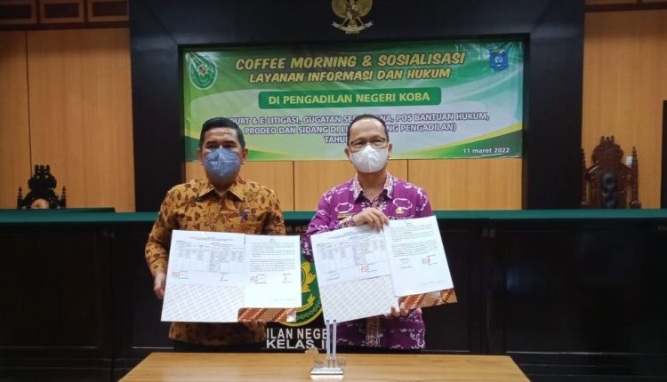 Acara ini sekaligus memberikan sosialisasi Informasi dan Pelayanan Hukum bagi masyarakat, dan dirangkaikan dengan Penandatanganan Nota Kesepahaman antara Pengadilan Negeri Koba (PN Koba) dan Pemerintah Kabupaten Bangka Tengah tentang penyediaan layanan sidang di luar gedung pengadilan.
