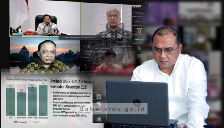 Angka tersebut dilihat dari proporsi penduduk dengan antibodi SARS CoV-2 per November dan Desember 2021. Demikian diungkapkan salah satu anggota Tim Pandemi Covid-19 FKM UI Pandu Riono, dalam konferensi pers secara hybrid bersama Menteri Dalam Negeri Tito Karnavian, dan Menteri Kesehatan Budi Gunadi, beserta kepala daerah di tingkat I dan II se-Indonesia, termasuk Gubernur Kepulauan Bangka Belitung (Babel) Erzaldi Rosman, Jumat (18/3/2022).