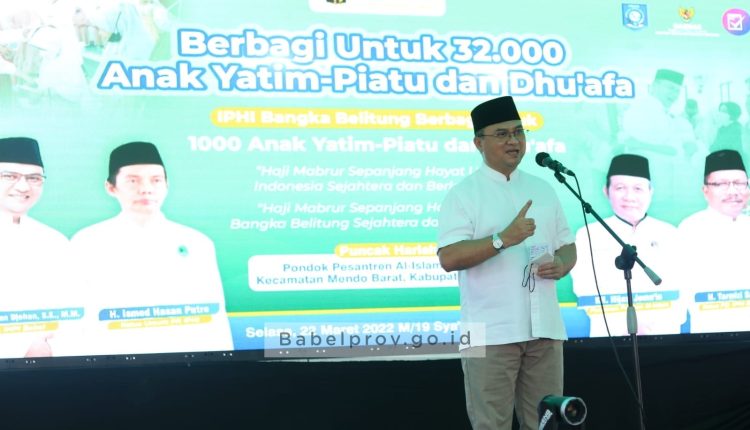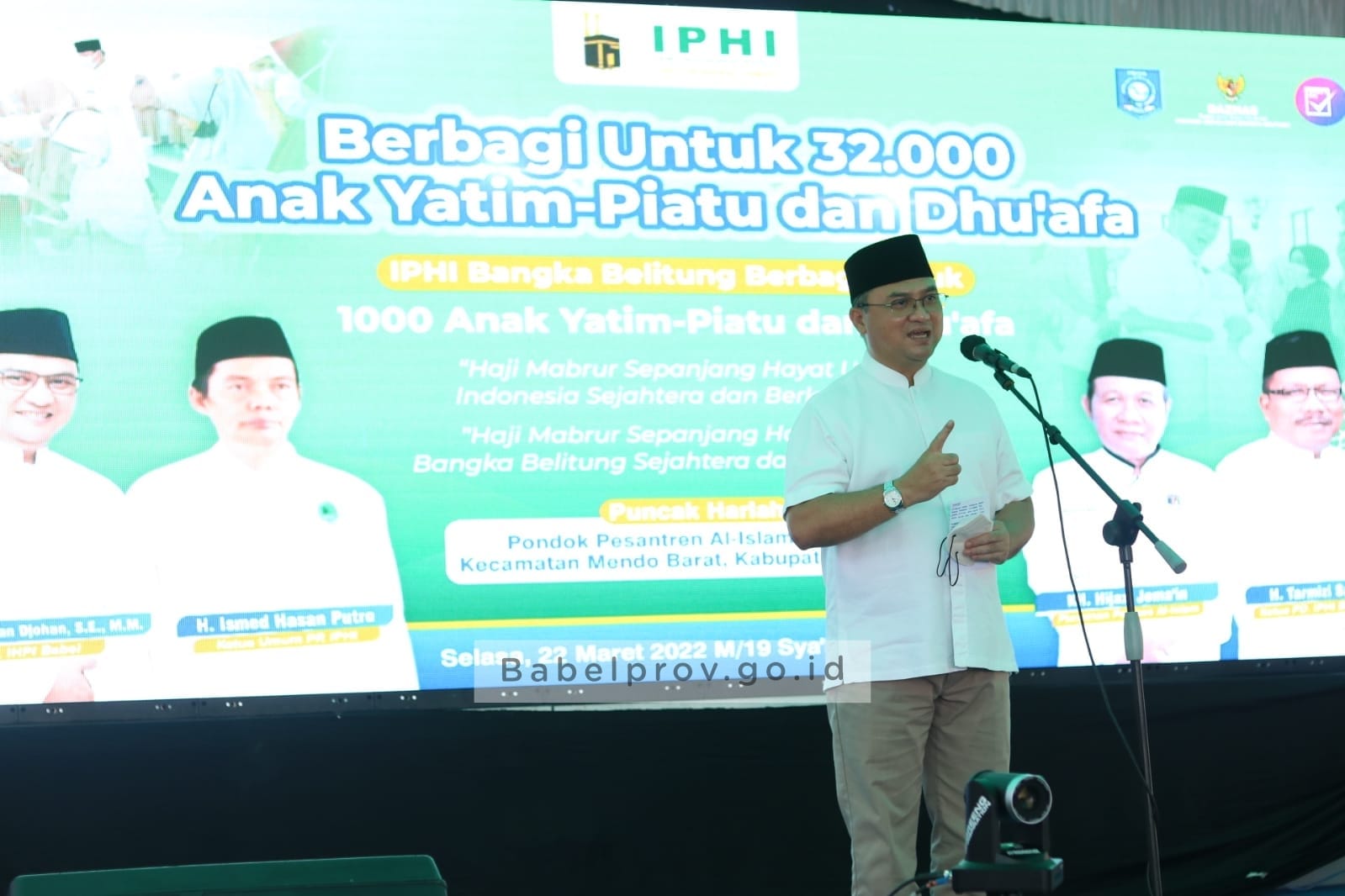 Gubernur Babel, Erzaldi Rosman yang juga sekaligus Ketua Pengurus Wilayah (PW. IPHI) Babel dalam sambutan mengatakan, peringatan hari jadi IPHI ke-32 tahun 2022 merupakan momentum yang sangat baik, karena secara serentak di seluruh Indonesia, IPHI dapat berbagi kepada anak yatim dan kaum dhuafa sebanyak 32.000 orang.