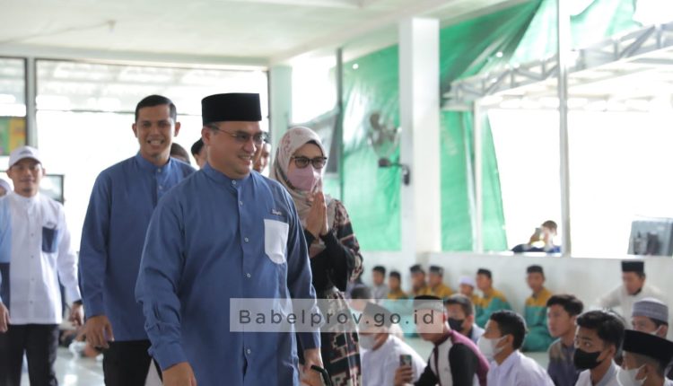 TerabasNews, PANGKALPINANG – Kedatangan yang kesekian kali di Kegiatan ‘Ngabaksho’ (Ngaji Asyik Bareng Akhwat Ikhwan Sholih), Gubernur Kepulauan Bangka Belitung (Babel) Erzaldi Rosman, bersama istri Melati Erzaldi, selain memberikan motivasi, juga turut mewisuda santriwan dan santriwati Program School of Ultimate Leader (SOUL) Tahun Ajaran 2021/2022, yang bertempat di Aula Al-Hijrah Daarul Mahabbah, pada Minggu (27/3/2022).