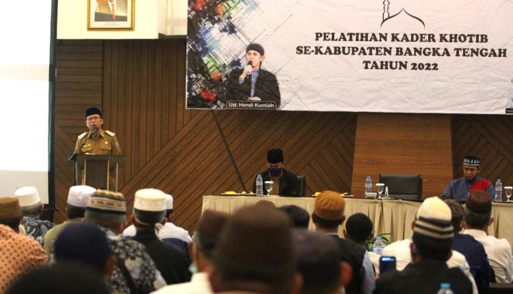 TerabasNews, Pangkalan Baru – Pelatihan Kader Khatib dan Dai se-Kabupaten Bangka Tengah (Bateng) Tahun 2022 yang diadakan pada Senin (28/03/2022) di Hotel Santika Bangka, Kecamatan Pangkalan Baru, resmi dibuka oleh Bupati Bateng, Algafry Rahman.