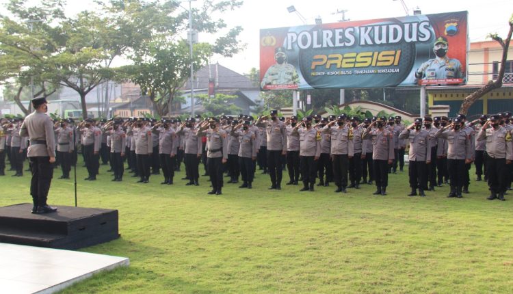 TerabasNews, Kudus – Kapolres Kudus AKBP Wiraga Dimas Tama memimpin apel perggeseran pasukan (Serpas) dalam rangka pengamanan pemilihan Kepala Desa (Pilkades) serentak di delapan desa yang ada di Kabupaten Kudus, Selasa (29/30/2022).