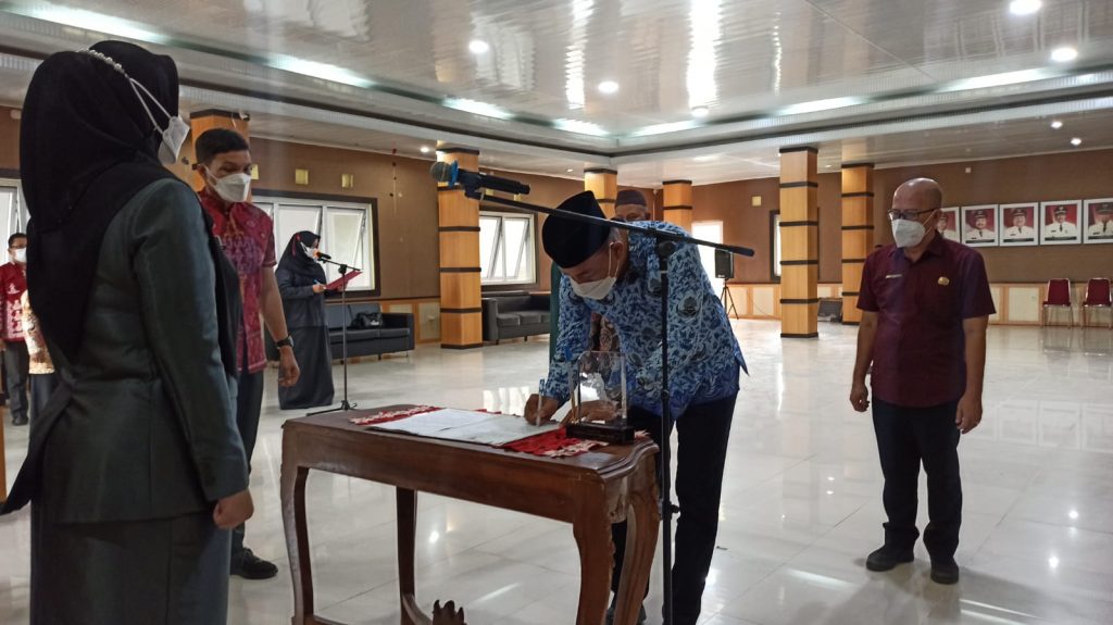 Pelantikan dan pengambilan sumpah jabatan dr.Muhammad Fauzan yang dilaksanakan di Hall Lantai II, Kantor Bupati Bangka Selatan berdasarkan surat keputusan Bupati Bangka Selatan Nomor 188.45/163/BKPSDMD/2022 tanggal 6 April 2022.