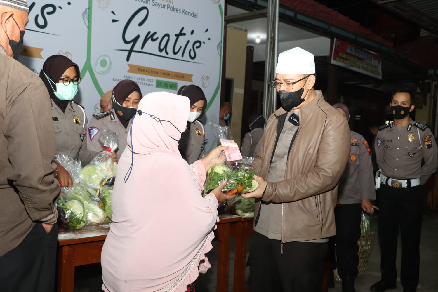 Harga Sembako Mulai Naik, Polres Kendal Bagikan Sayuran Gratis untuk Jamaah Tarawih