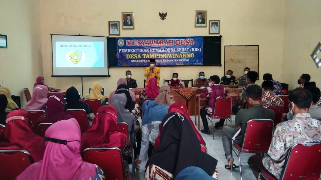 Musdes kali ini dilaksanakan dalam rangka Pembentukan Rumah Desa Sehat (RDS) Desa Tampingwinarno Kecamatan Sukorejo Kabupaten Kendal. Hadir dalam kegiatan tersebut adalah Camat Sukorejo, Kepala Desa Tampingwinarno, Perangkat Desa, Pendamping Desa, Lembaga Desa BPD, RT dan RW & PKK, Bhabinkamtibmas.