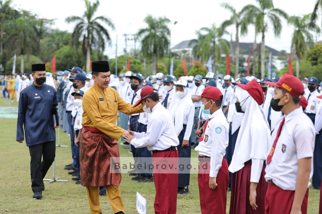 TerabasNews, PANGKALPINANG – Sekretaris Daerah (Sekda) Provinsi Kepulauan Bangka Belitung (Babel), Naziarto berkesempatan memimpin upacara peringatan Hari Pendidikan Nasional 2022), Jumat (13/5/2022) di halaman kantor Gubernur Babel.