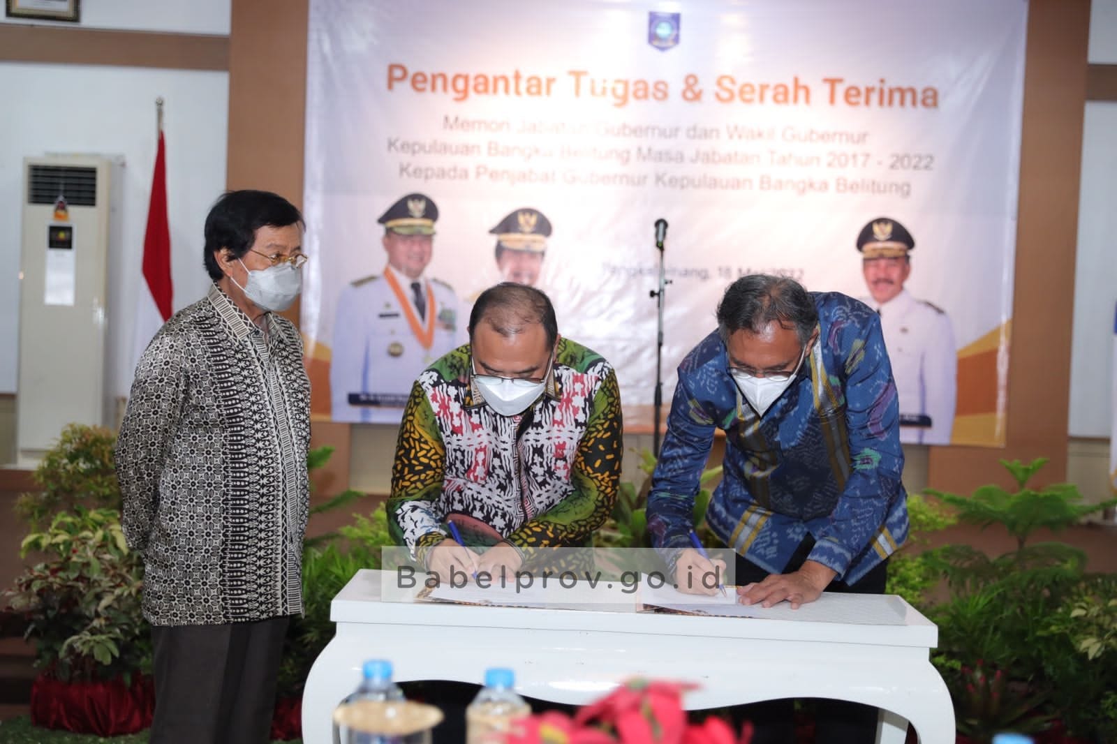TerabasNews, PANGKALPINANG – Setelah diperlihatkan gambaran masa kepemimpinan Erzaldi Rosman dan Abdul Fatah ketika menjalankan amanah yang dipercayakan masyarakat sebagai Gubernur dan Wakil Gubernur Kepulauan Bangka Belitung (Babel) periode 2017-2022, pasangan pemimpin ini menyerahkan memori jabatan kepada Penjabat (Pj) Gunernur Babel Ridwan Djamaluddin, pada Rabu (19/5/2022) malam.