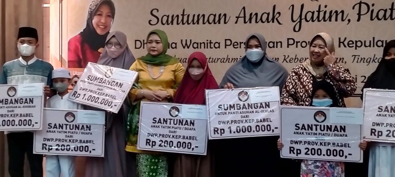 TerabasNews, Pangkalpinang – Darma Wanita Persatuan (DWP) Provinsi Kepulauan Bangka Belitung kembali laksanakan kegiatan silaturahmi serta pemberian santunan kepada 130 anak yatim piatu dan kaum dhuafa serta membantu 4 yayasan panti asuhan, bertempat di ruang Pasir Padi kantor Gubernur Babel, Senin, 23/5.