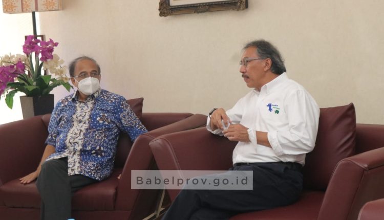 TerabasNews, PANGKALPINANG – Penjabat (Pj) Gubernur Kepulauan Bangka Belitung (Babel), Ridwan Djamaluddin menyambut kedatangan Ketua Umum Asosiasi Pengusaha Hutan Indonesia (APHI) Indroyono Soesilo, yang juga merupakan Mantan Menteri Koordinator Bidang Kemaritiman di Gedung VIP Bandar Udara Depati Amir, Pangkapinang, Rabu (1/6/22).