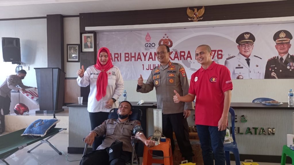 TerabasNews, Bangka Selatan – Menyambut Hari Ulang Tahun (HUT) ke-76 Bhayangkara pada 1 Juli 2022 mendatang, Kepolisian Resor (Polres) Bangka Selatan menggelar bakti kemanusiaan donor darah, Selasa (7/6/2022).