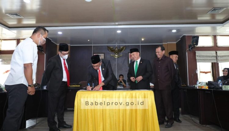 TerabasNews, PANGKALPINANG – Penjabat (Pj) Gubernur Kepulauan Bangka Belitung (Babel) Ridwan Djamaluddin dengan DPRD Babel menandatangani kesepakatan bersama terkait penambahan kegiatan baru pada Kebijakan Umum APBD (KUA) dan Prioritas dan Plafon Anggaran Sementara (PPAS) yang bertempat di Ruang Badan Anggaran (Banggar) DPRD Babel, Rabu (8/6/2022).