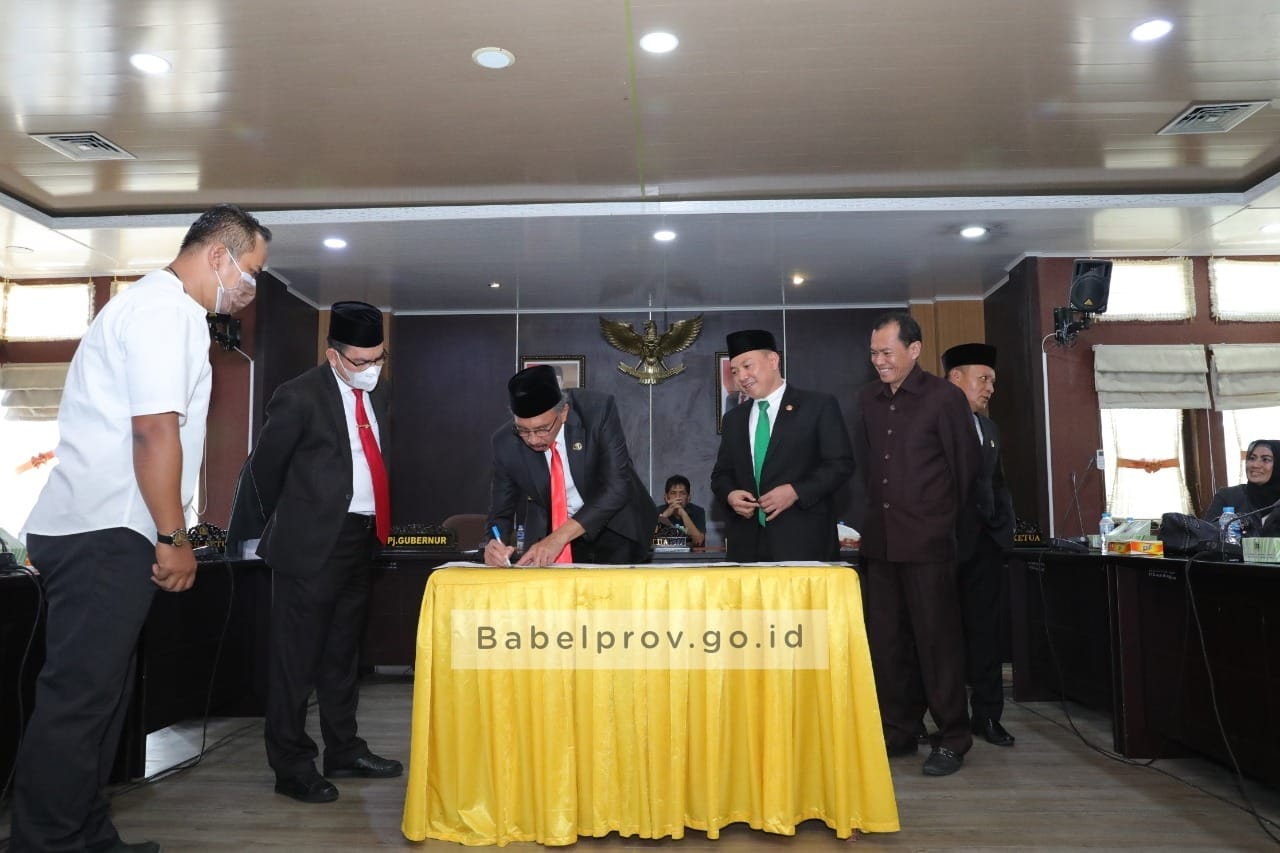 “Momentum penandatanganan berita acara ini membuktikan kepada kita semua bahwa sinergitas antara legislatif dan eksekutif di Provinsi Kepulauan Bangka Belitung berjalan dengan baik dan ini agar dijaga dan bina. untuk ini saya mengajak kepada kita semua untuk selalu menyatukan langkah dan perbuatan demi kebaikan kemajuan dan kemakmuran di Provinsi Kepulauan Bangka Belitung,” katanya.
