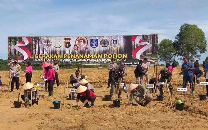 TerabasNews, Bangka Selatan – Kepolisian Resor (Polres) Bangka Selatan melakukan gerakan penanaman pohon dalam rangka rehabilitasi lahan pasca tambang yang ada di Kabupaten Bangka Selatan, Jumat (24/6/2022).