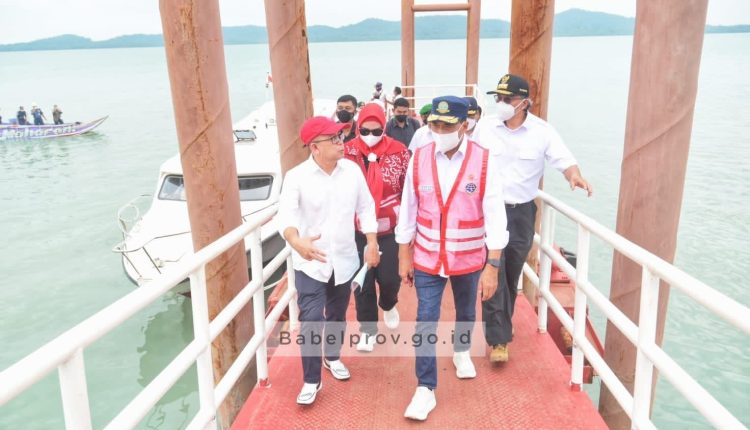 TerabasNews, TUKAK SADAI – Presiden Republik Indonesia (RI), Joko Widodo meminta pelabuhan-pelabuhan yang ada di Bangka dan Belitung lebih produktif. Untuk itu, Menteri Perhubungan (Menhub) RI, Budi Karya Sumadi beserta rombongan didampingi Penjabat (Pj) Gubernur Kepulauan Bangka Belitung (Kep. Babel), Ridwan Djamaluddin dan Wakil Bupati Bangka Selatan, Debby Vita Dewi meninjau langsung Pelabuhan Penyebrangan Sadai, Bangka Selatan, Minggu (3/7/22).