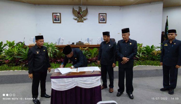 TerabasNews, Sungailiat – Dewan Perwakilan Rakyat Daerah (DPRD) Kabupaten Bangka melaksanakan Rapat Paripurna persetujuan Raperda tentang pertanggungjawaban pelaksanaan APBD Kabupaten Bangka tahun 2021 dan penyampaian rancangan Kebijakan Umum Anggaran (KUA) dan Prioritas Plafon Anggaran Sementara (PPAS) pada Anggaran Pendapatan dan Belanja Daerah (APBD) tahun 2023.