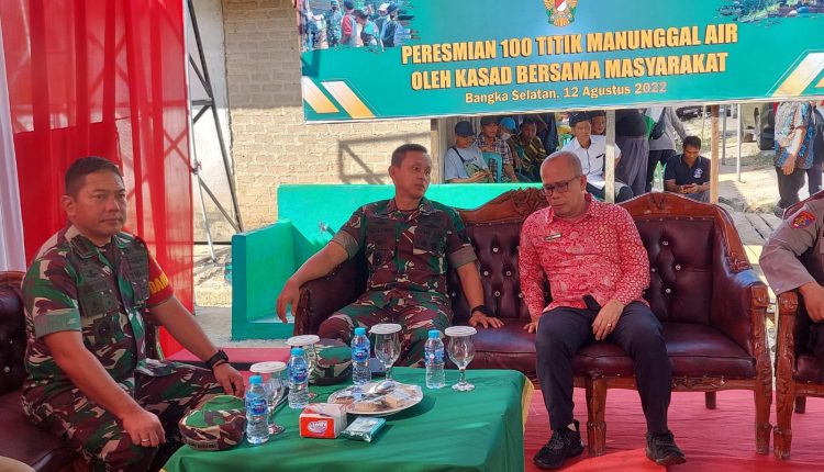 TerabasNews, Toboali. Komandan Korem 045/Gaya Brigjen TNI Ujang Darwis, MDA. Mengikuti Vicon Peresmian 100 Titik Manunggal Air Oleh Kepala Staf TNI AD bersama masyarakat di Lokasi TMMD Ke 114 Desa Rias Basel berlokasi di Desa Rias Kecamatan Toboali Bangka Selatan Senin 12/08/2022.