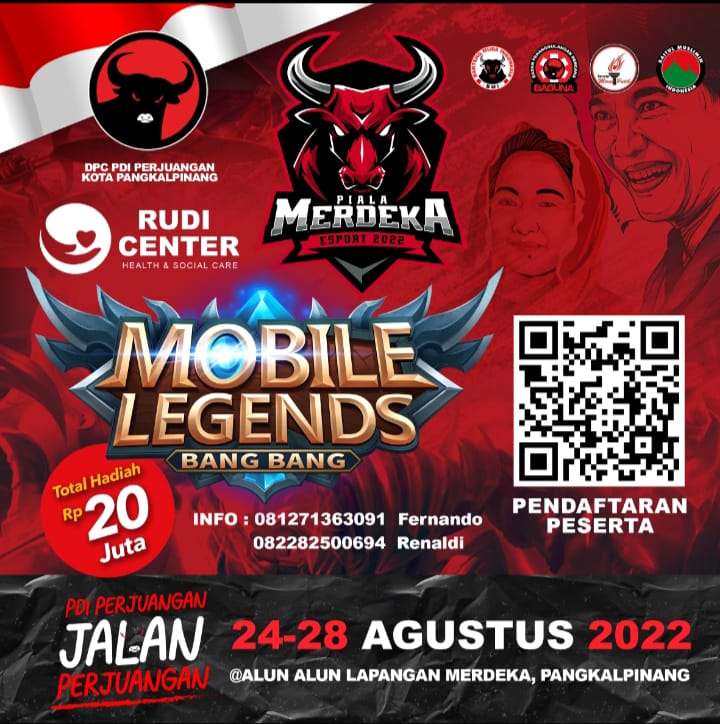 “Semua pendaftaran gratis tanpa dipungut biaya, untuk itu ayoo kepada para gamers di Babel ikut berpartisipasi aktif dalam meramaikan dan mensukseskan event esport Piala Merdeka 2022,” pungkasnya