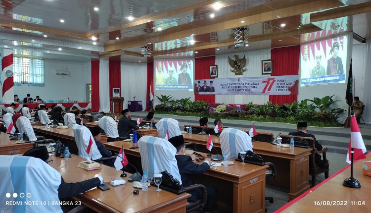 DPRD Bangka menggelar Rapat Paripurna Istimewa Mendengarkan Pidato Kenegaraan Presiden Republik Indonesia Memperingati HUT RI ke 77