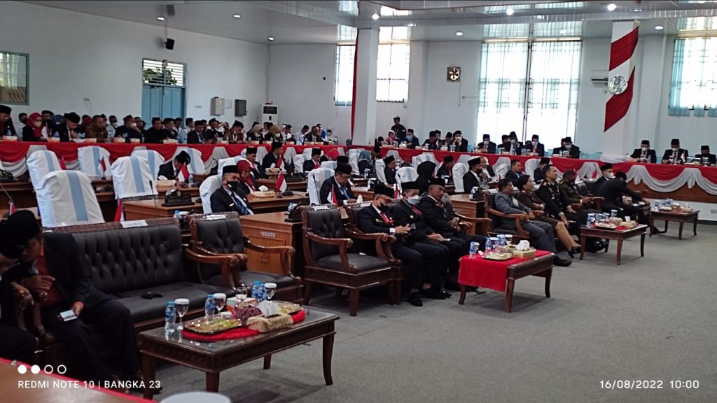 TerabasNews, Sungailiat – DPRD Kabupaten Bangka menggelar rapat Paripurna Istimewa Mendengarkan Pidato Kenegaraan Presiden Republik Indonesia pada hari Selasa 16 Agustus 2022, dalam rangka memperingati HUT ke 77 kemerdekaan Republik Indonesia, Selasa 16/8.