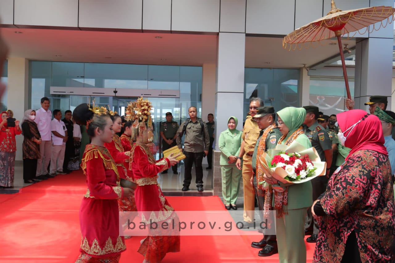 Kedatangan pimpinan tertinggi TNI Angkatan Darat disambut Penjabat (Pj) Gubernur Kep. Babel Ridwan Djamaluddin, Pangdam II/Sriwijaya Mayjen TNI Hilman Hadi serta unsur Forum Koordinasi Pimpinan Daerah (Forkopimda) Kep. Babel.