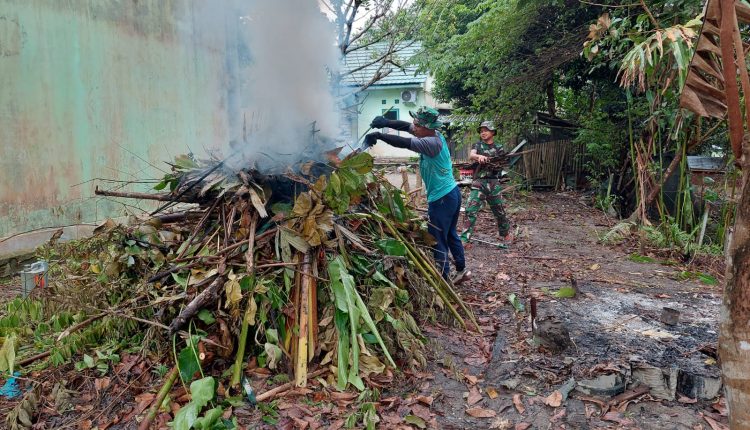 TerabasNews, Namang. Kepala Seksi Intelijen Kasrem 045/Gaya Kolonel Inf Dikdik Sadikin memimpin 54 prajurit untuk membersihkan Pangkalan atau Markas Korem yang lama yang berada di Desa Jelutung Kecamatan Namang Bangka Tengah Jumat 02/09/2022.