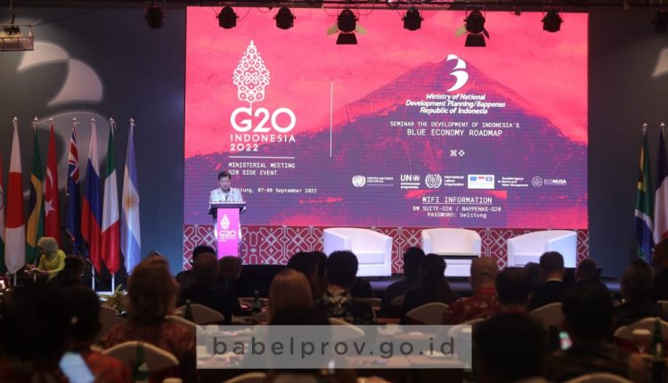 “Dalam hal ini, Indonesia telah menempatkan blue economy sebagai bagian dari diskusi penting pada Development Working Group (DWG). Di mana, pendekatan melalui potensi ekonomi laut Indonesia ini diharapkan dapat mendukung pemulihan ekonomi inklusif untuk meningkatkan peluang kesejahteraan masyarakat,” jelasnya dalam sesi diskusi pertama Side Event G20 pada seminar “The Development of Indonesia’s Blue Economy Roadmap: Explore the Existing Condition of Blue Economy Sector in Indonesia”, bertempat di Ballroom Hotel BW Suite, Tanjung Pandan, Belitung, Rabu (7/9/22).