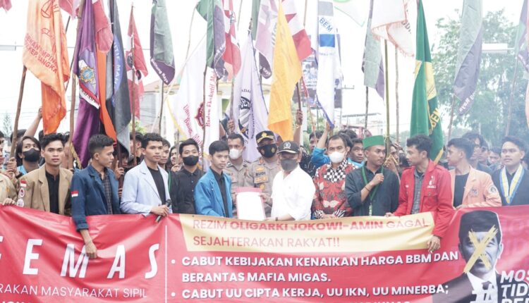TerabasNews, Pangkalpinang – Gelombang penolakkan terhadap kenaikan harga BBM masih terus berlanjut. Kini aksi unjuk rasa kembali digelar dikawasan simpang tujuh, Pangkalpinang pada Rabu (14/09) oleh massa yang tergabung dalam aliansi Badan Eksekutif Mahasiswa (BEM) di se-Babel yang menamakan dirinya Gerakan Masyarakat Sipil (Gemas) Bangka Belitung menolak kenaikan harga BBM.