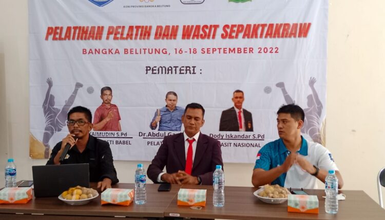 TerabasNews, PANGKAL PINANG – Persatuan Sepak Takraw Indonesia Provinsi Kepulauan Bangka Belitung, menggelar pelatihan wasit dan pelatih, di Gedung Olahraga Sahabudin dan BPMP Babel.
