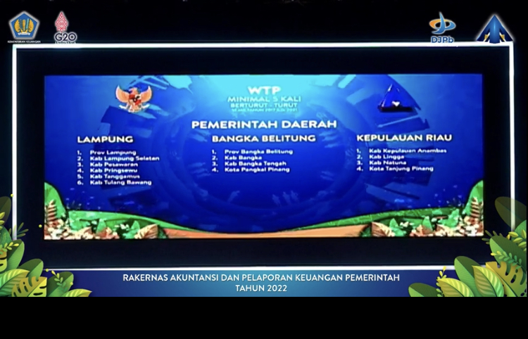 Provinsi Kepulauan Bangka Belitung, Kabupaten Bangka dan Kota Pangkalpinang juga menerima penghargaan ini. Turut disaksikan secara virtual oleh Asisten Bidang Administrasi Umum Elly Irsyah didampingi perwakilan dari BPKAD Bangka Tengah.