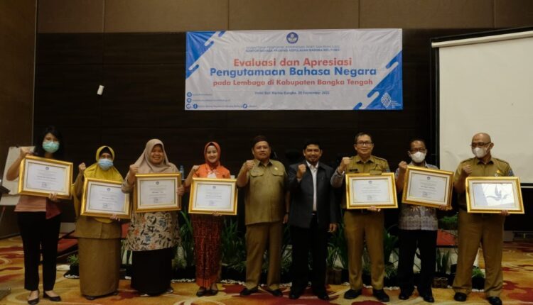 TerabasNews, Pada Senin, 26 September 2022, Kantor Bahasa Provinsi Kepulauan Bangka Belitung melaksanakan kegiatan Evaluasi dan Apresiasi Pengutamaan Bahasa Negara pada Lembaga di Kabupaten Bangka Tengah. Kegiatan yang bertempat di Hotel Soll Marina Bangka ini merupakan kegiatan akhir dari rangkaian kegiatan Pengutamaan Bahasa Negara tahun 2022 yang melibatkan 15 lembaga di Kabupaten Bangka Tengah, di antaranya lembaga pemerintah, lembaga pendidikan, rumah sakit swasta, dan hotel. Selain itu, kegiatan ini juga merupakan realisasi salah satu dari tiga program prioritas Badan Pengembangan dan Pembinaan Bahasa (literasi) yang diwujudkan dalam bentuk kegiatan Pembinaan Penggunaan Bahasa Negara di 45 Lembaga di Provinsi Kepulauan Bangka Belitung. Kegiatan pembinaan ini diawali dengan penentuan 45 lembaga yang akan diikutsertakan kegiatan ini, yaitu Kota Pangkalpinang, Kabupaten Bangka Tengah, dan Kabupaten Bangka.