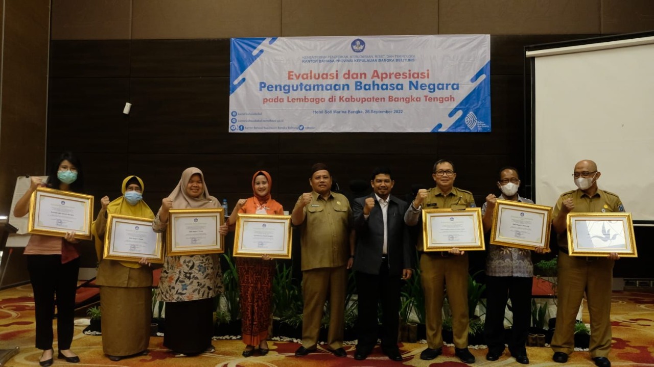 Kabupaten Bangka Tengah Raih Tujuh Penghargaan Kegiatan Evaluasi dan Apresiasi Pengutamaan Bahasa Negara pada Lembaga di Babel