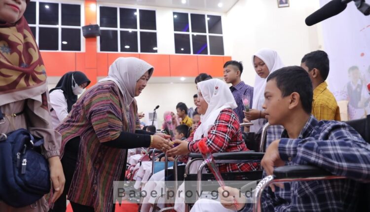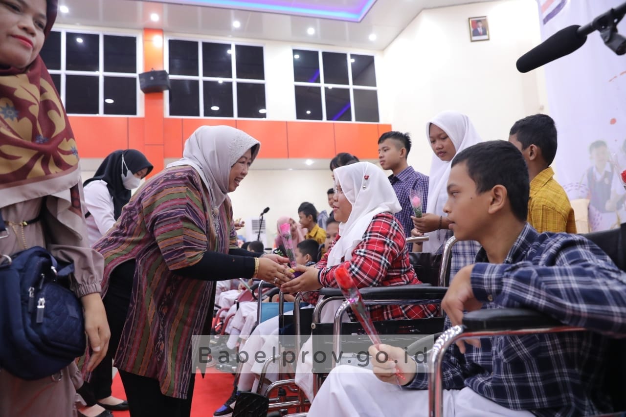 TerabasNews, PANGKALPINANG – Penjabat (Pj) Ketua Tim Penggerak Pemberdayaan Kesejahteraan Keluarga (TP PKK) Provinsi Kepulauan Bangka Belitung (Kep. Babel), drg. Sri Utami Soedarsono turut berbagi keceriaan bersama puluhan siswa-siswi Sekolah Luar Biasa (SLB), dalam acara Gebyar SLB se-Babel 2022, bertempat di Balai Penjaminan Mutu Pendidikan (BPMP) Babel, Rabu (28/9/2022).