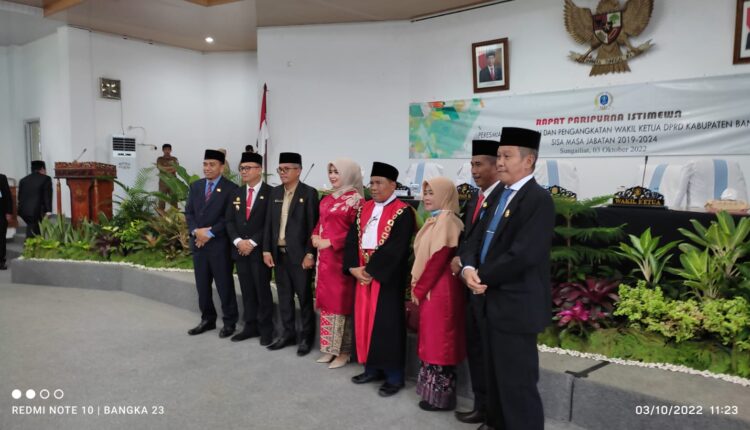 TerabasNews, SUNGAILIAT – Dewan Perwakilan Rakyat Daerah (DPRD) Kabupaten Bangka menggelar rapat paripurna istimewa pergantian dan pengangkatan Wakil Ketua 1 DPRD sisa masa jabatan 2019-2024 berlangsung diruang mahligai DPRD Bangka, Senin (03/10).