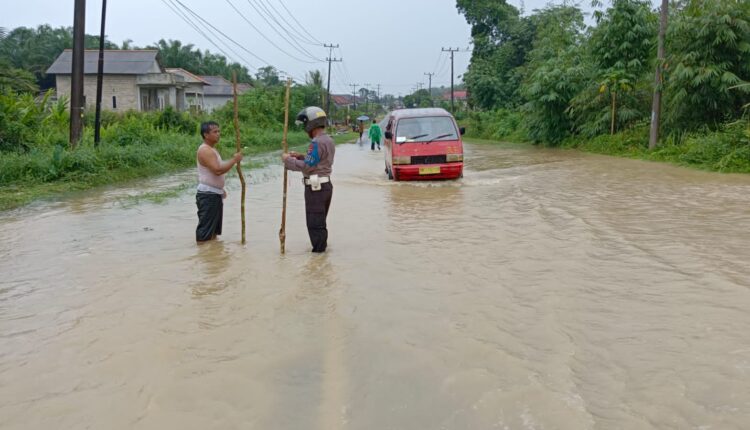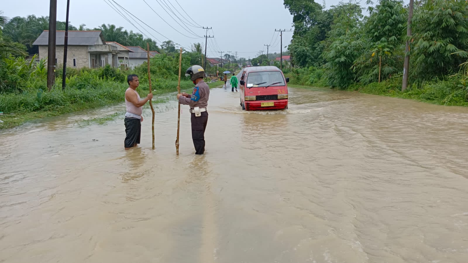 Air Sungai Petaling Desa Nangka Meluap Genangi Jalan Raya, Polsek Airgegas Bantu Pengguna Jalan yang Melintas