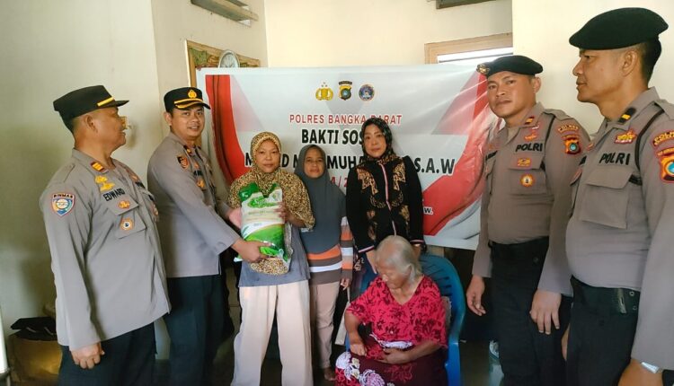Kegiatan bakti sosial yang dipimpin Wakapolres Bangka Barat Kompol Andri Eko Setiawan, SIK yang di dampingi Kabag Sumda, Kasat Binmas, beserta personil Polres Bangka Barat sembako bagi warga kurang mampu