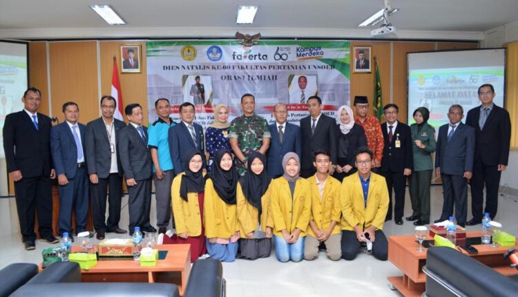 Orasi ilmiah dalam rangka Dies Natalis Fakultas Pertanian Universitas Jenderal Soedirman (Unsoed) Purwokerto yang ke-60 dengan narasumber Danrem 071/Wijayakusuma Kolonel Inf Yudha Airlangga, S.E., dan Prof. Dr. Ir. Tamad, M.Si., Guru Besar Fakultas Pertanian Unsoed.