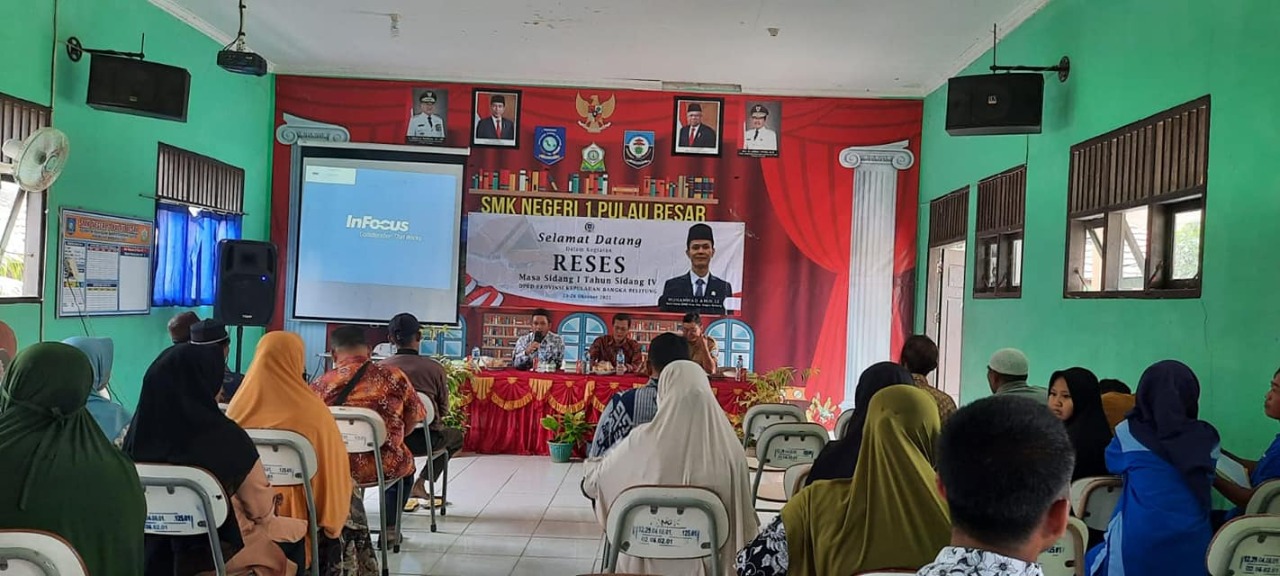 TerabasNews, Pulau Besar – Pimpinan Dewan Perwakilan Rakyat Daerah (DPRD) Provinsi Kepulauan Bangka Belitung H. Muhammad Amin, SE yang merupakan politisi Partai Gerindra Bangka Belitung melakukan kegiatan Reses menyerap aspirasi di SMKN I Pulau Besar Kabupaten Bangka Selatan Selasa 24/10.
