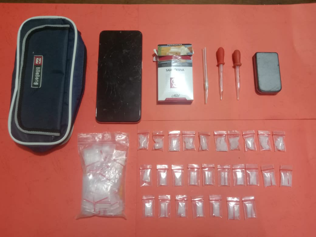 Setelah ditangkap dan digeledah, lanjut Windaris, dari tersangka kami mendapat barang bukti narkoba paket sedang dan kecil sebanyak 27 paket.