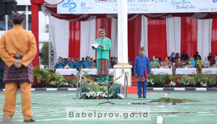 Hal itu disampaikannya dalam sambutan pada agenda Peringatan Hari Jadi Provinsi Kep. Babel ketika menjadi Inspektur Upacara HUT Babel ke-22 di Halaman Kantor Gubernur, Senin (21/11/22).