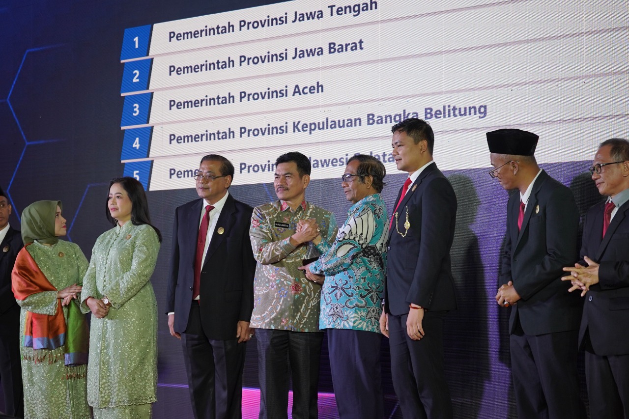 Atas pencapaian tersebut, Sekretaris Daerah (Sekda) Pemprov Kep. Babel Naziarto menerima penghargaan yang diserahkan langsung oleh Menteri Koordinator Bidang Politik, Hukum, dan Keamanan RI Mahfud MD, di Hotel Atria Gading Serpong Tangerang, Rabu (14/12).